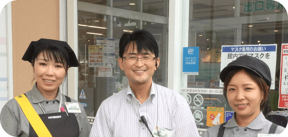 率直に言うと、家が近く通勤に便利だったからです。 自転車で通っていますが、雨の時もカッパを着て通勤しています。 仕事が終わったら、職場で買い物ができますし、荷物は自転車のカゴに入れて帰れるのでとても便利です。福利厚生が充実していたからです。 社会保険の適用もありますし、昼食の補助や買物補助制度もあり助かっています。 試験に合格すると、パート社員も昇給や正社員登用の機会があるのも魅力の一つでした。 高校生のときに平和堂の他店でアルバイトをしていた経験もあって、安心して働けると思い入社しました。子どもの頃から店舗を利用していました。 両親に「平和堂へ買い物に行こうか」と連れていってもらっていたので、思い入れもありますし 親しみを持っていましたね。規模が大きく、しっかりした会社だと思っていましたね。
